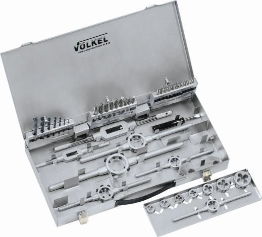 Laadukas saksalaisen Völkelin kierretyökalusarja. Sarjassa kierrepakat, -tapit, porat ja tarvittavat vääntimet.
