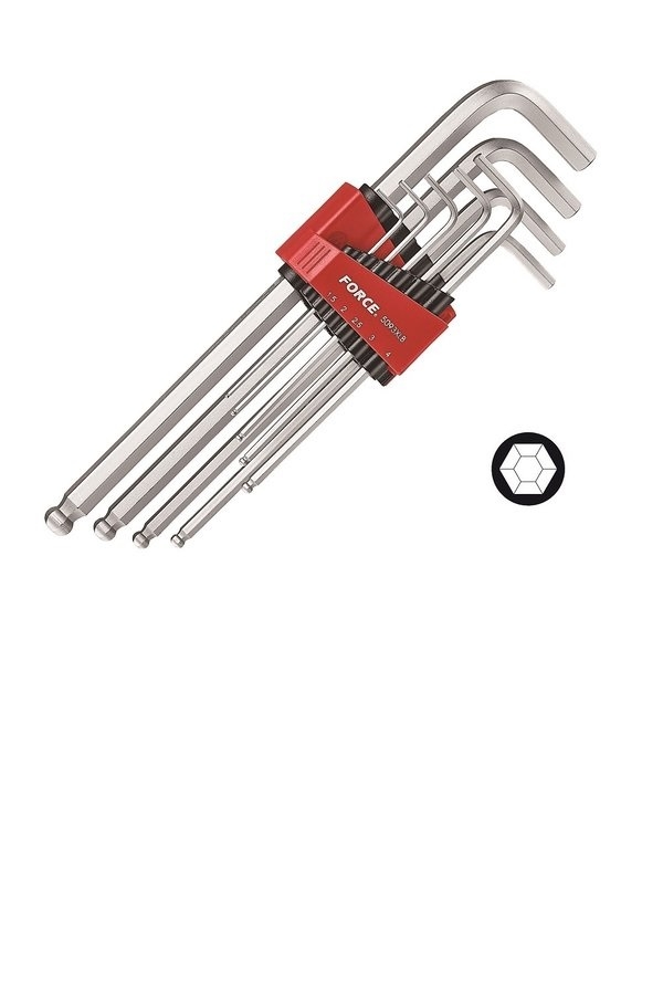 HUOM! Tuumakoossa! (Kuvassa mm- sarja) Pitkä pallopäinen. Sisältää seuraavat koot 1/16", 5/64", 3/32", 1/8", 5/32", 3/16", 1/4", 5/16" ja 3/8"