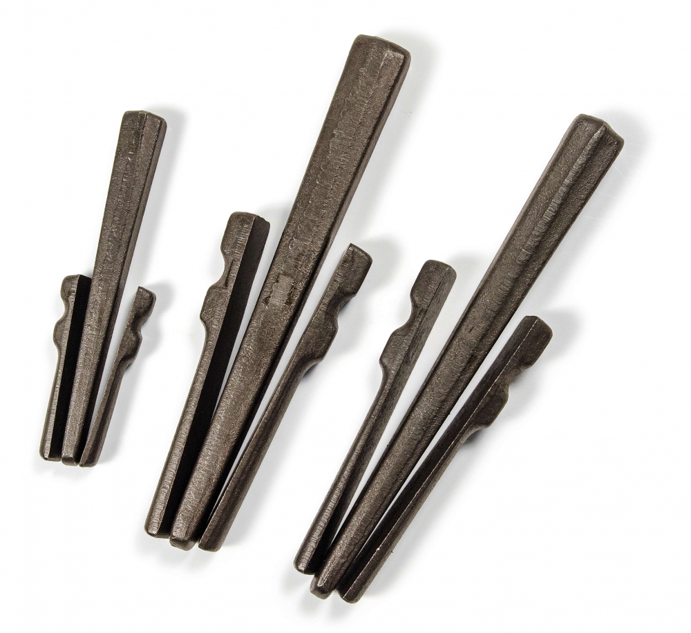 Tamo kivikiilat ovat välttämätön työkalu, kun haluat muotoilla tai halkaista kiviä paikoissa, joissa räjäyttäminen ei ole vaihtoehto. Tämä laadukas kivikiilasetti sisältää kaiken tarvittavan: kaksi sivupalaa ja yhden varsinaisen kiilan.