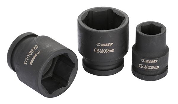 Boxon laadukkaat konehylsyavaimet 1/2"- vääntiöön. CR-MO. Valmistaja Boxo. Koot välillä 8 - 28 mm. Hylsyjen pituus 38 mm.