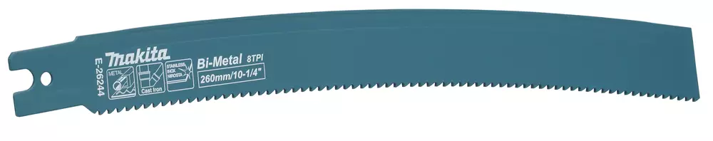Kun haluat katkaista isot putket ennätysajassa Tämä terä on yhdistelmä ulottuvuutta ja nopeutta. Makita E-26244 on sarjan pisin (260 mm) ja samalla kaareva.