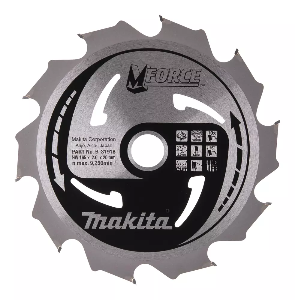 Tämä kestävä Makita M-Force pyörösahanterä on ihanteellinen valinta nopeaan ja tehokkaaseen puun sahaukseen. Terän 165 mm halkaisija ja Z-10 hammastus takaavat, että työskentely sujuu vaivattomasti. Terä jättää karkean sahausjäljen, mikä tekee siitä sopivan karkeampaan puuntyöstöön.