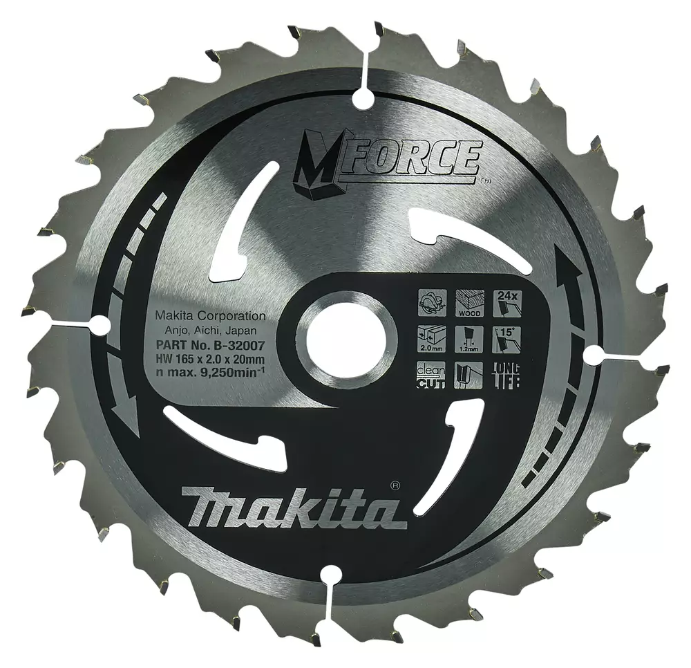 Tämä kestävä Makita M-Force pyörösahanterä on ihanteellinen valinta puun sahaamiseen. Sen 165 mm halkaisija ja 24-hampainen terä takaavat keskihienon ja tarkan sahausjäljen. Terä on suunniteltu erityisesti käsipyörösahoille, ja sen 2,0 mm hampaan leveys sekä 20 mm reiän halkaisija tekevät siitä monipuolisen työkalun erilaisiin puuntyöstöprojekteihin.