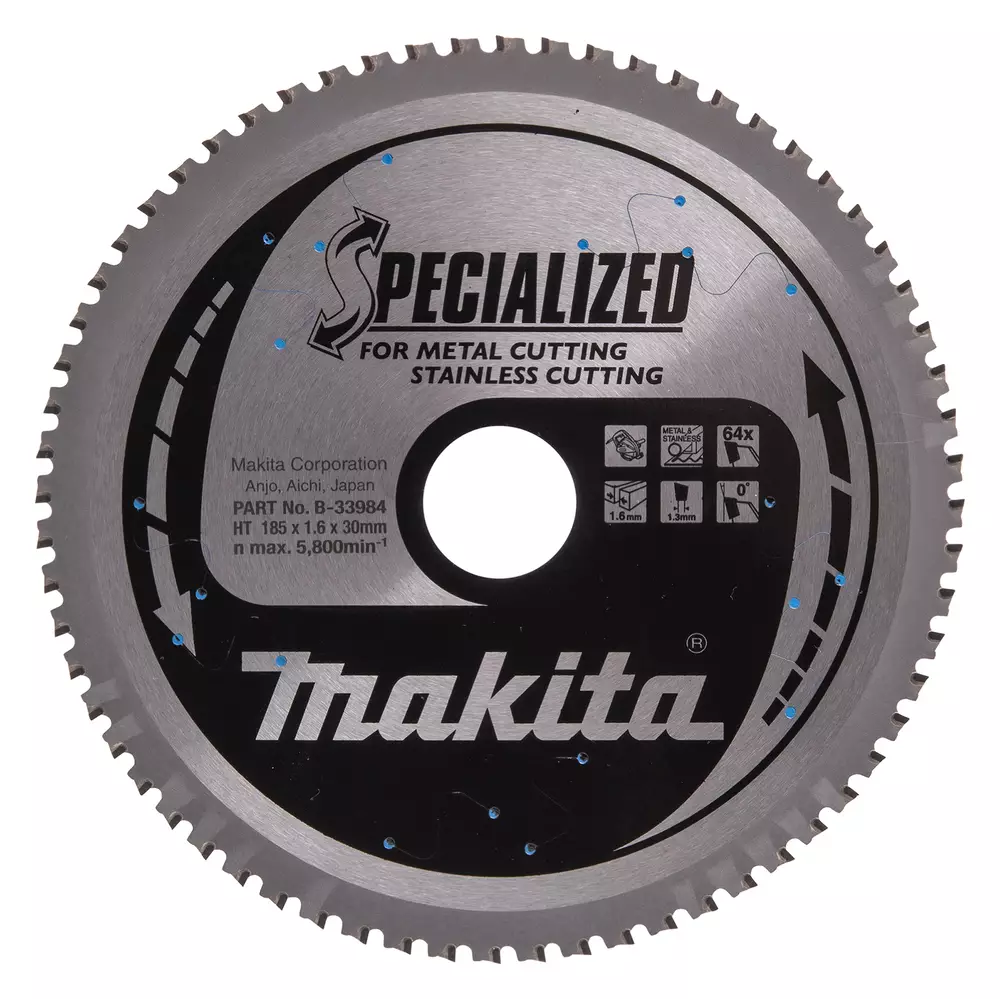 Tämä Makita Specialized -pyörösahanterä on suunniteltu erityisesti metallin ja ruostumattoman teräksen tehokkaaseen sahaamiseen. Sen 185 mm halkaisija ja 64 hampaan tiheä hammastus takaavat siistin ja tarkan lopputuloksen. Terä sopii käytettäväksi metallipyörösahoissa.