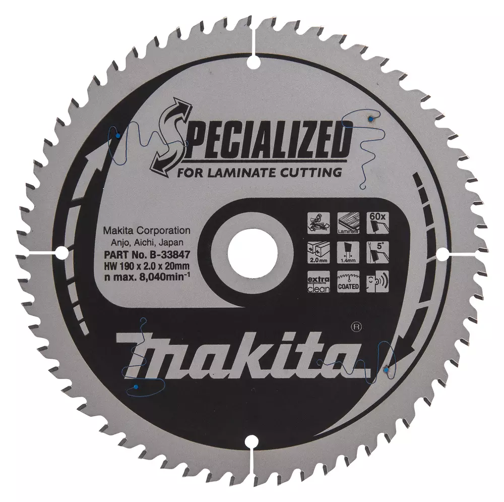 - Erittäin siisti sahausjälki: Terä on optimoitu laminaatin sahaamiseen, jättäen puhtaat ja tarkat leikkausjäljet.