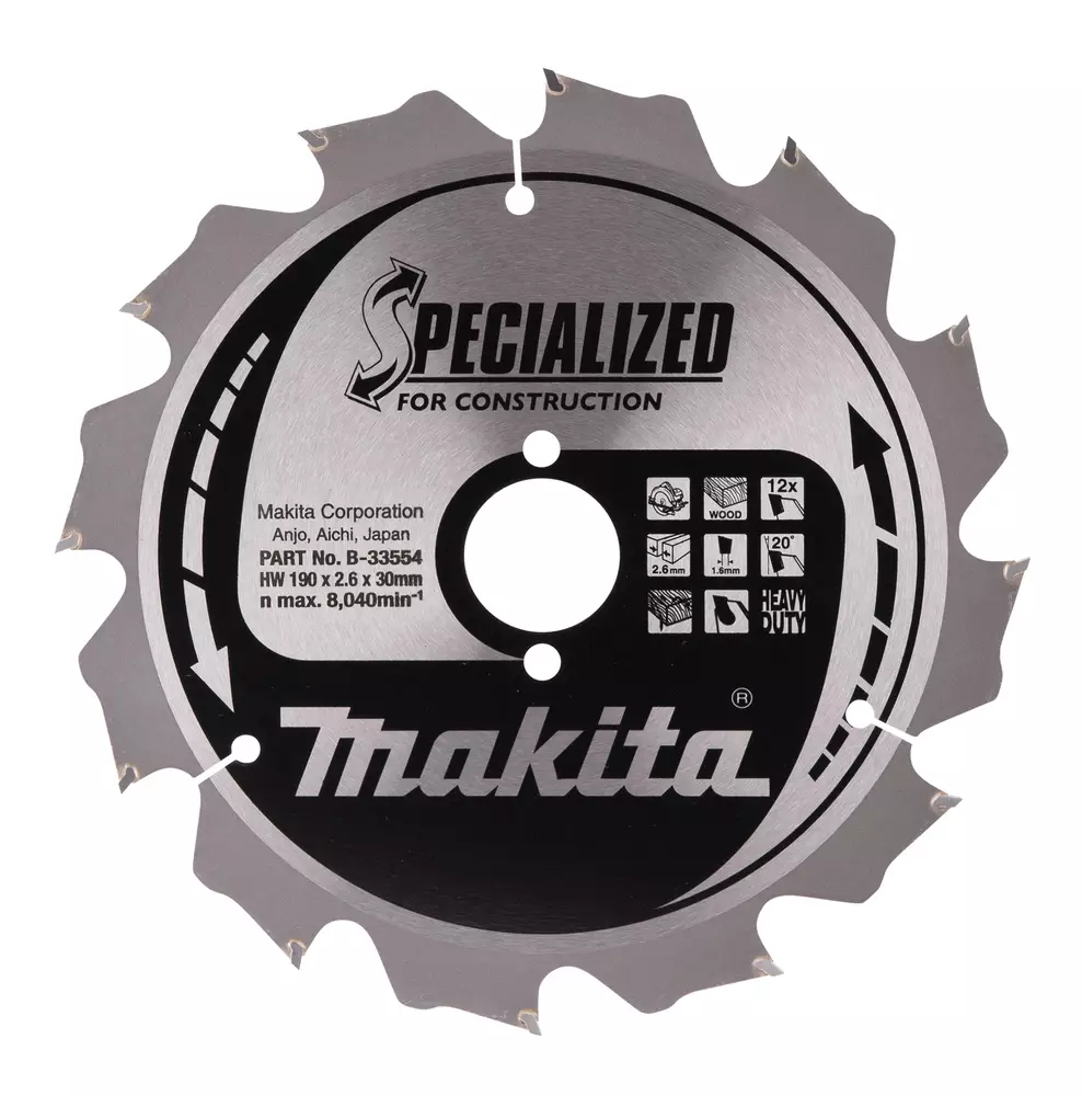 Makita Pyörösahanterä Ø190 x 30 x 2,6 mm, Z-12, naulainen ja betoninen puu (B-33554)
