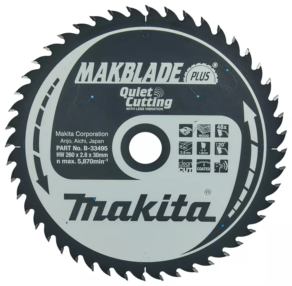 Makita Pyörösahanterä Ø260x30x2,8 mm, Z-48, hiljainen laserleikattu Makblade Plus (B-33495)