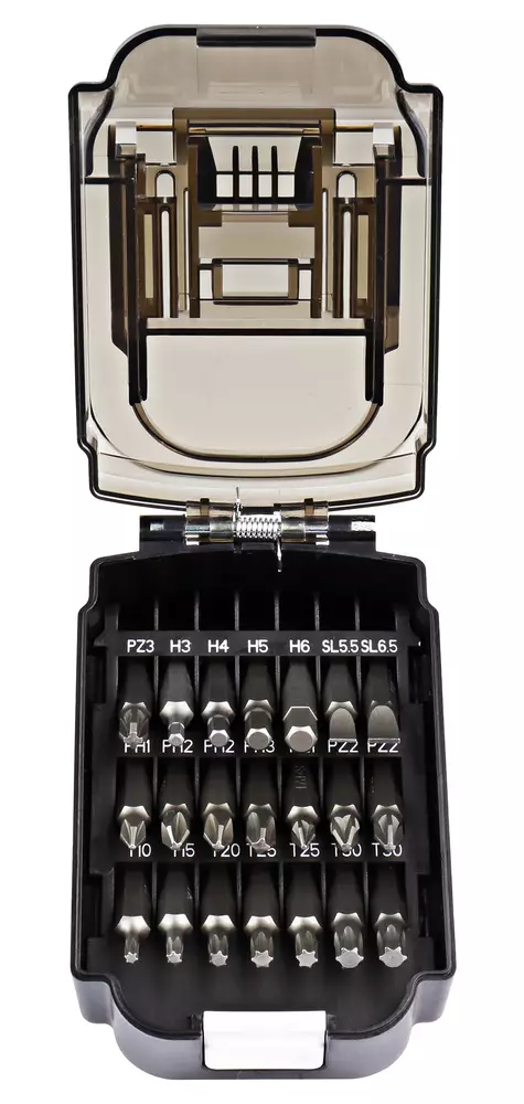 Tässä sarjassa yhdistyvät käytännöllisyys ja Makitan tyyli, sillä Makita B-68323 on pakattu tuttuihin ja turvallisiin kuoriin – nimittäin Makitan 18 V:n LXT-akkua muistuttavaan koteloon. Käytännössä se näyttää akulta, mutta sisältää työmaan suosikkikärjet – kaikki 50 mm pituisina, jotta yletät sinnekin, missä lyhyemmät luovuttavat.