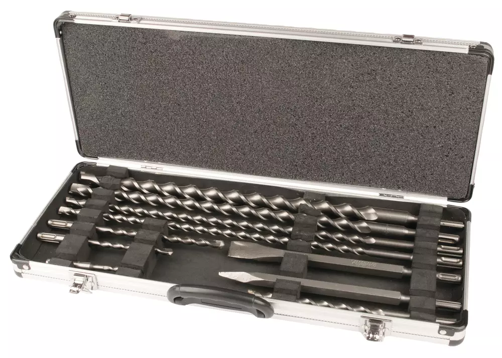 Tämä kattava 10-osainen sarja sisältää kaiken mitä tarvitset SDS-Plus -kiinnityksellä varustettuun poravasaraasi. Mukana on laaja valikoima poranteriä sekä piikki ja taltta, kaikki kätevästi pakattuna kestävään alumiinisalkkuun.