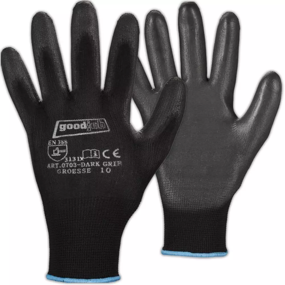 Hanki täydellinen pito ja mukavuus työhösi Dark Grip -työhanskalla. Tämä musta, PU-pinnoitettu hanska tarjoaa erinomaisen suojan ja tuntuman, jolloin voit työskennellä tehokkaasti ja turvallisesti.